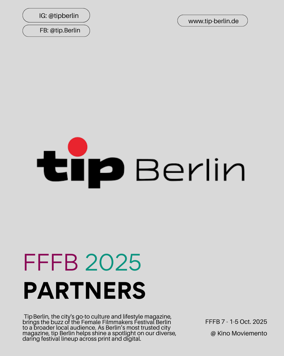 tipBerlin has been the heartbeat of the city for decades, guiding Berliners and visitors alike through the best in film, art, music, and nightlife. With their support, our festival’s bold programme of films, talks, and events will reach even more audiences across the city, connecting cinephiles with stories that inspire, challenge, and celebrate women’s voices in film. 🎬